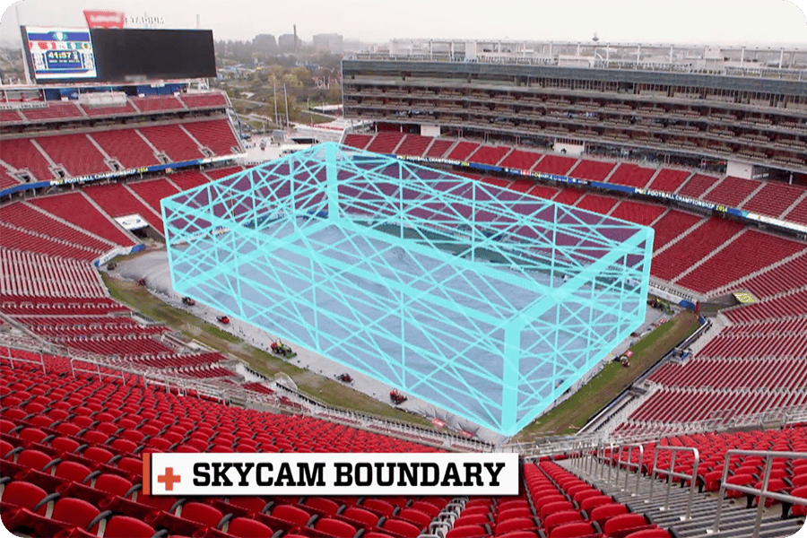 The Cables: See, in order to set up the SkyCam before every broadcast, a production crew has to arrive at the field two days early to install four large reels (containing about 1,400 feet of Kevlar-lined rope each) to the highest corners of the stadium.